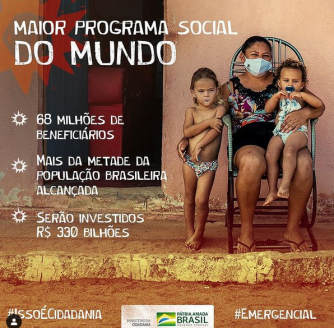 O Auxílio Emergencial é considerado o maior programa de assistência social do mundo, sendo pago a mais de 68 milhões de beneficiários e atingido mais da metade de toda a população brasileira. Ao fim do programa, recursos da ordem de R$ 330 bilhões terão sido investidos pelo Governo Federal.